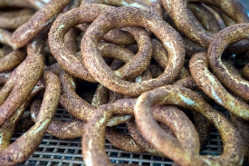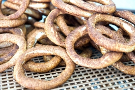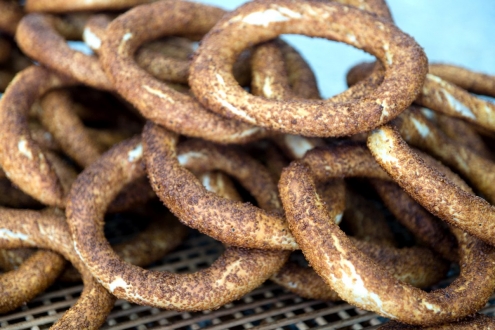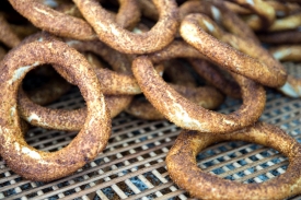 Daha sonra haşlanan bu simitleri büyük bir tabak içinde susamlayarak, susamlanan bu simitleri önceden 200 derecede ısıtılan fırında pişirerek servis edelim.