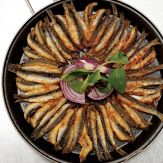 Balıkların alt kısmı kızardıktan sonra üzerine düz bir kapak kapatarak fazla yağını ayrı bir kaba süzdürünüz.